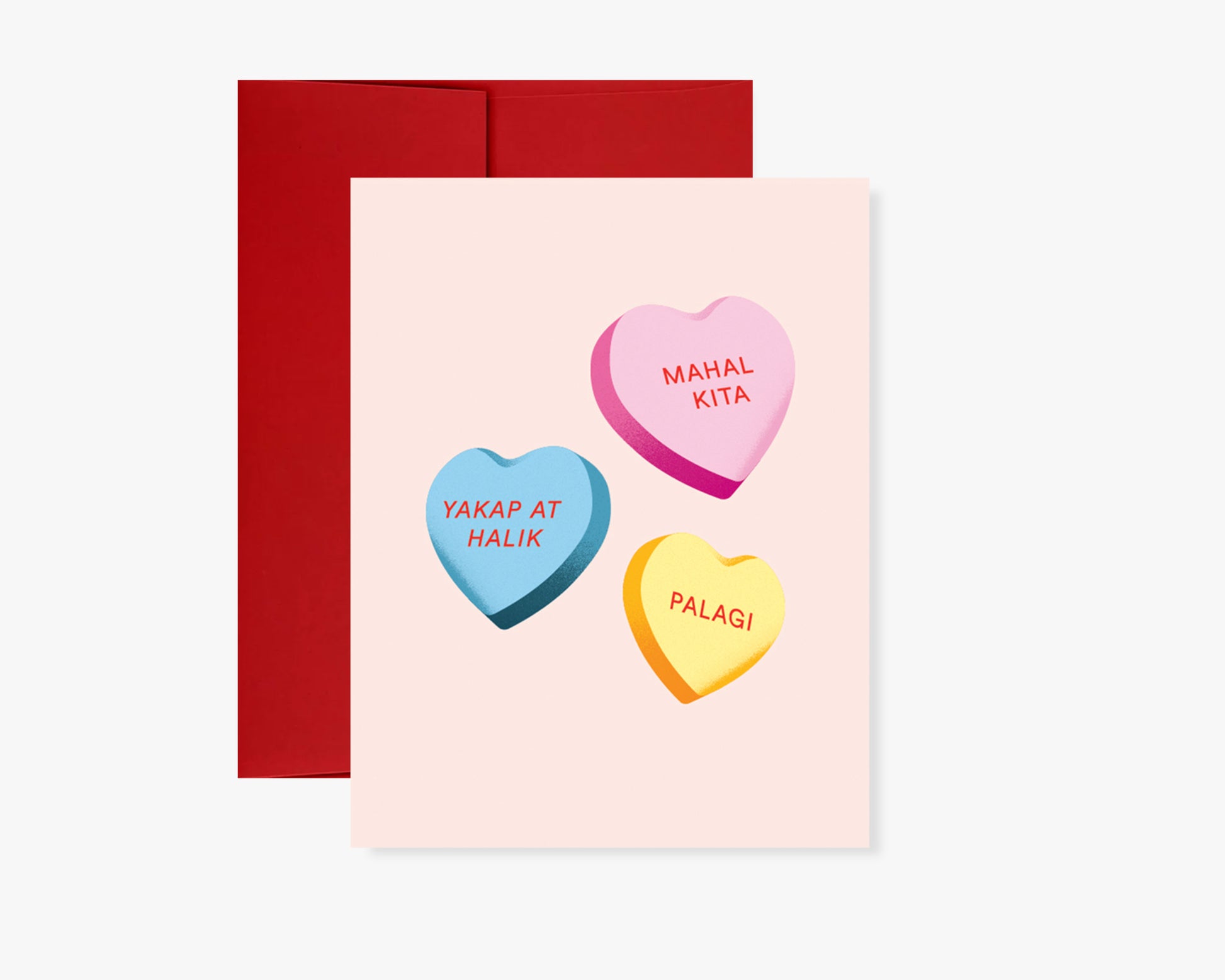Celebrate love this Valentine’s Day with our charming Filipino Candy Heart Valentine’s Day Card! Featuring iconic heart candies adorned with sweet Tagalog phrases like “Mahal Kita” (I love you), “Yakap at Halik” (Hug and Kiss), and “Palagi” (Always), this card is perfect for showing affection to your significant other, friends, or family. Whether you’re sending a romantic message or a thoughtful note, this card is a delightful way to share Filipino culture and love in one heartfelt gesture.
