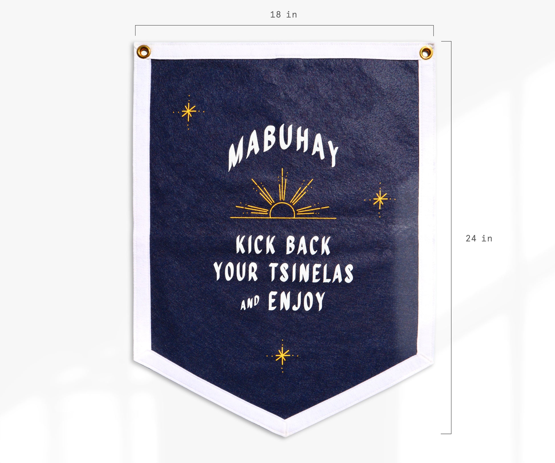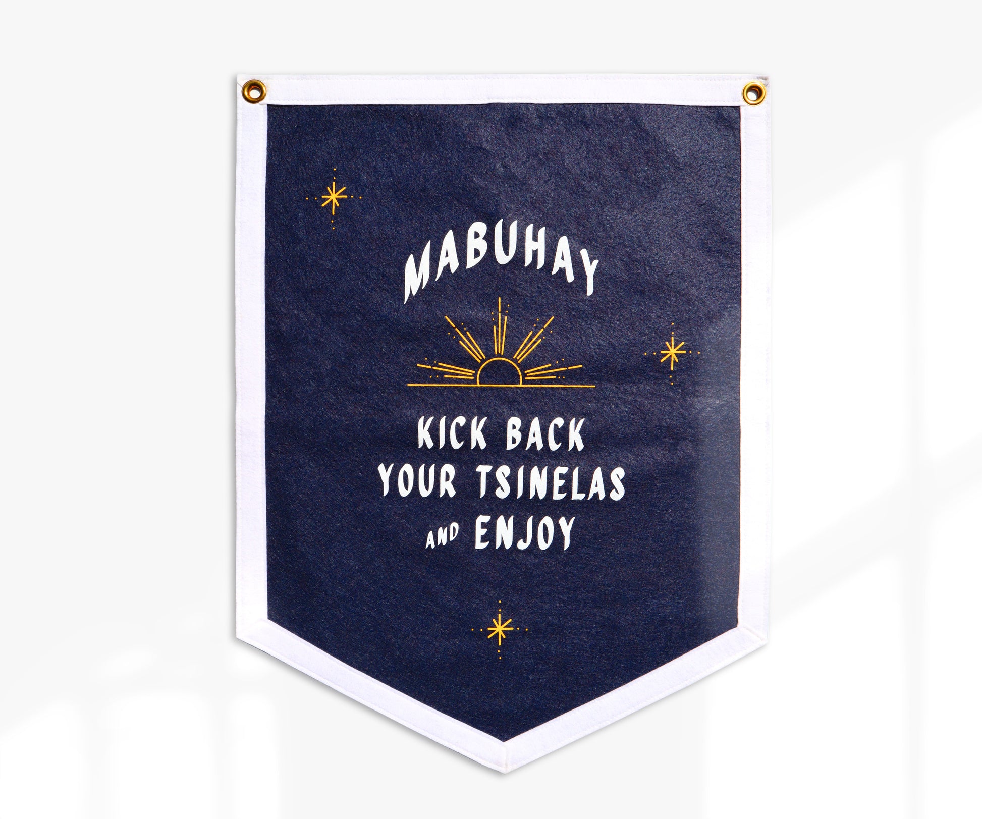 Welcome guests into your Filipino home with our vibrant felt banner flag that reads 'Mabuhay, kick off your tsinelas and enjoy'! 🌞